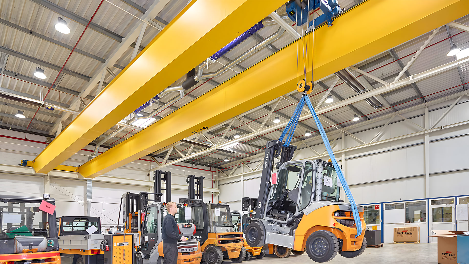 QE型通用橋式起重機依據GB/T14405-2011標準所設計、制造.該型號起重機是在QD型起重機基礎上設有兩臺起重小車,其可以單獨工作,也可以聯臺動作,適用于工礦企業車間及鐵路、港口碼頭等貨場吊運長件物品。